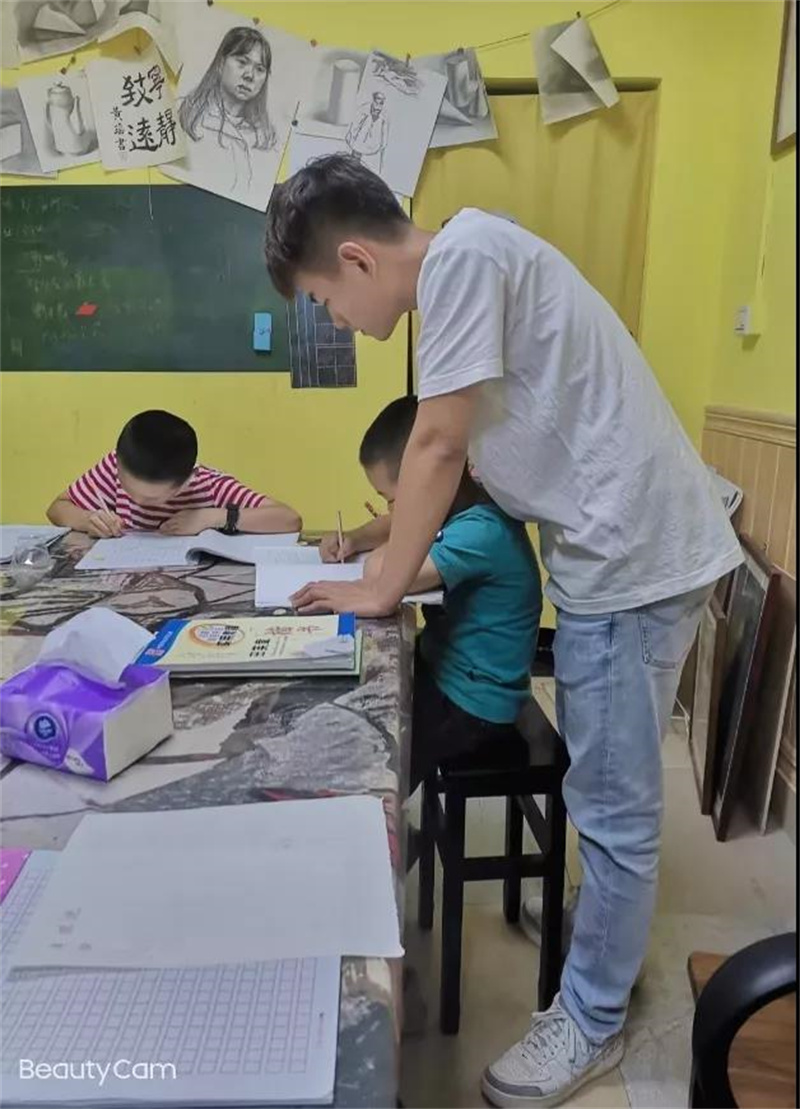 20建筑室内设计6班黄江涛前往厦门市翔安区书法培训机构指导小朋友运笔,坐姿,培养其良好的习惯