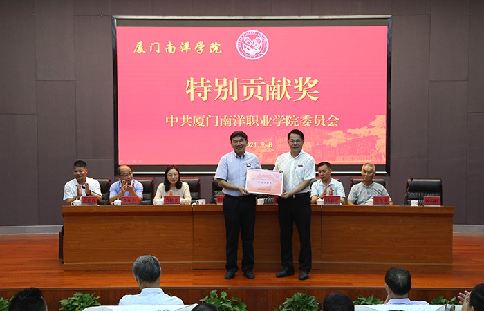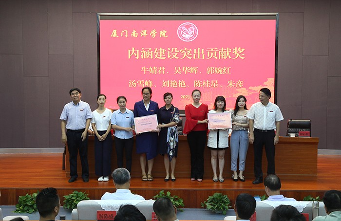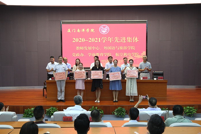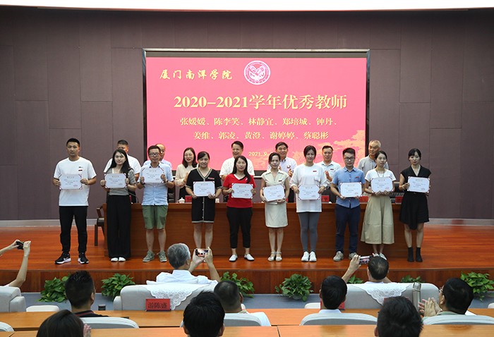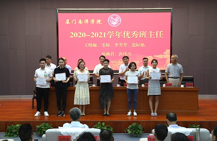 副董事长鲁晓芹宣读表彰决定。校领导分别为获得2020-2021学年特别贡献奖、内涵建设突出贡献奖、先进集体及先进个人进行表彰,对第七届中青年教师教学技能竞赛和2019年和2020年“我的南洋学生”征文获奖者进行颁奖。
